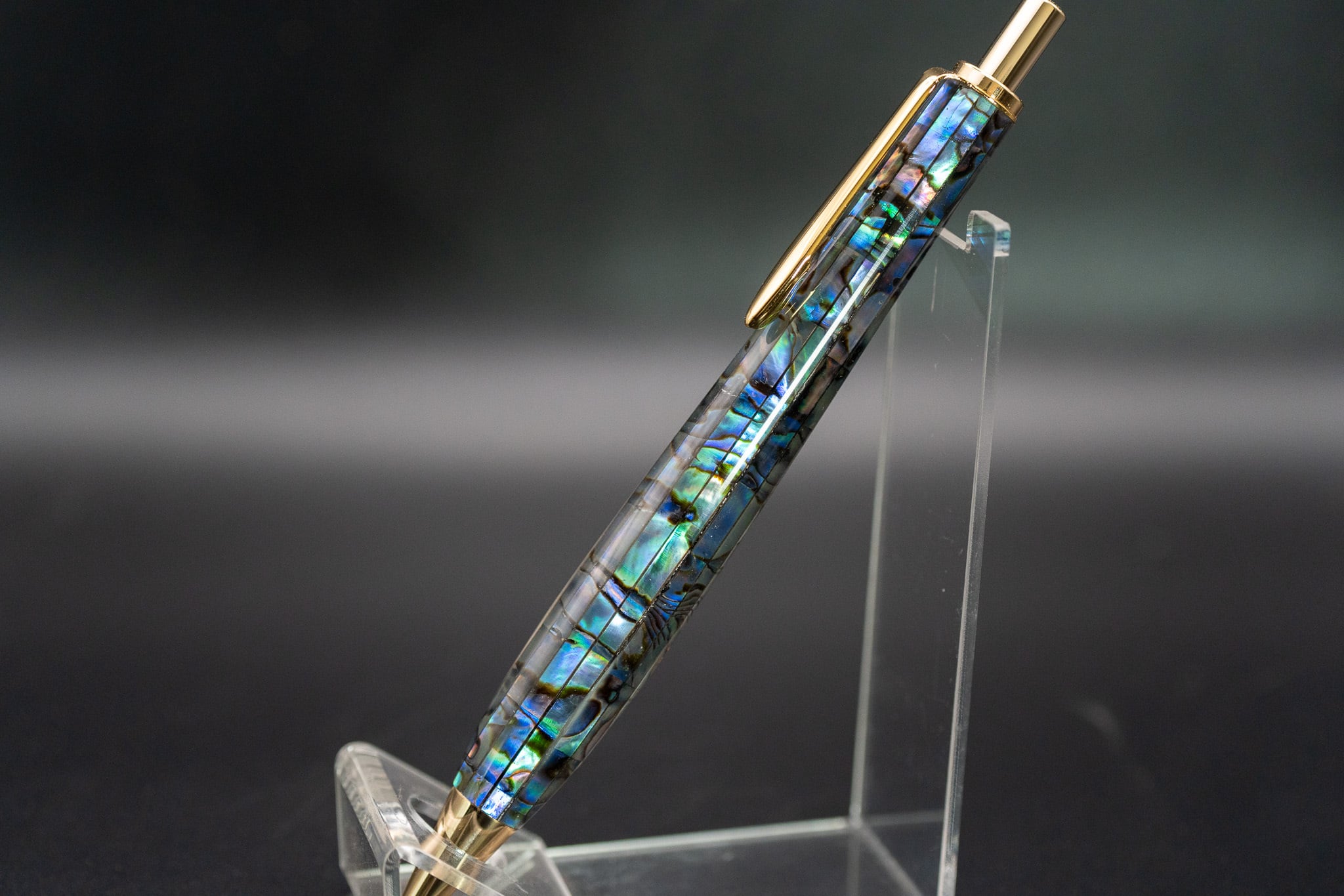 こちらはニュージーランド原産のアバロンを2㎜幅にカットし、樹脂で閉じ込めました。