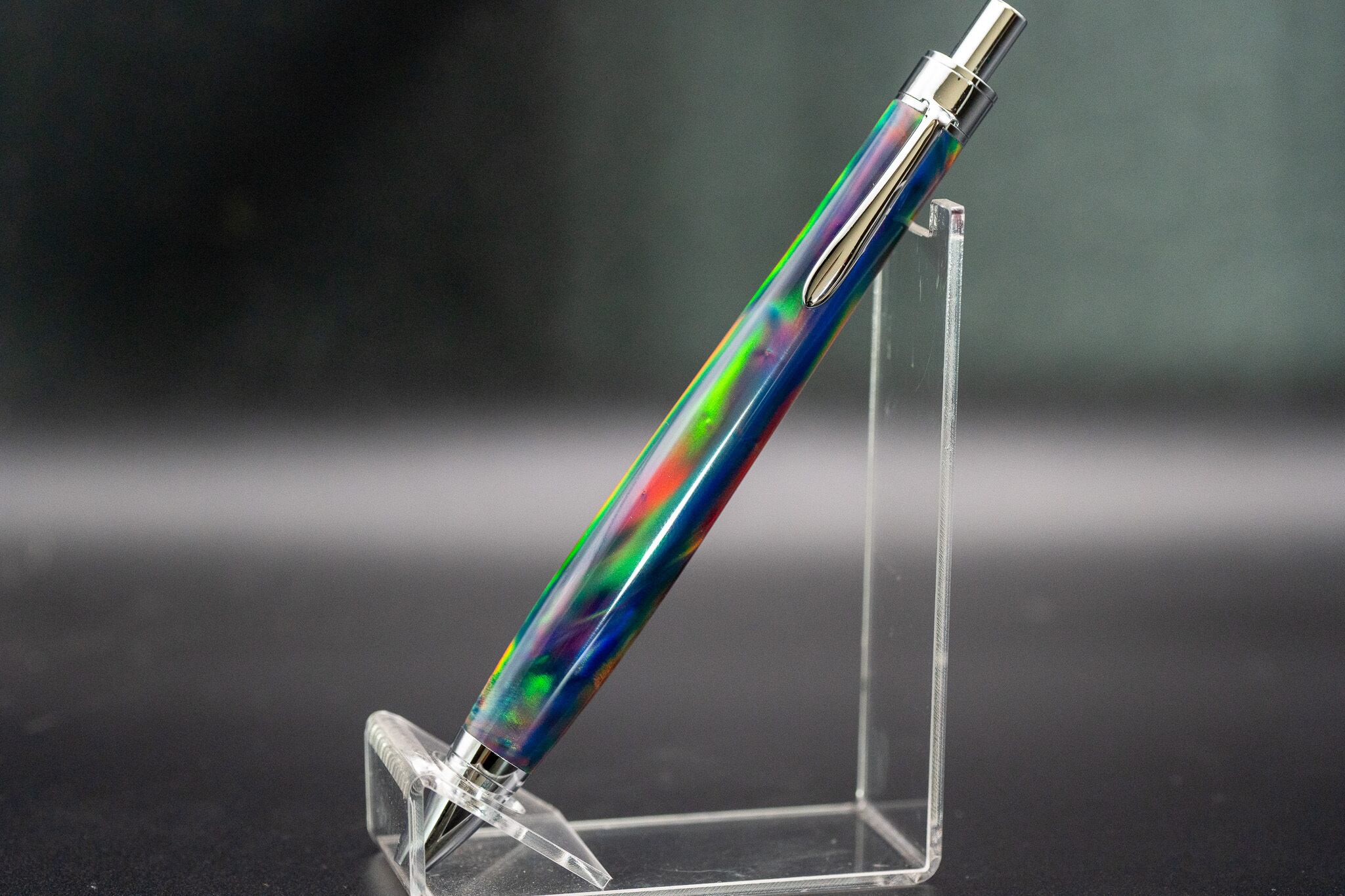 日本が誇る新技術により、樹脂とシリカ粒子(天然オパールの構成成分)から製造されています。この度は、大きな結晶を贅沢に使用し、ペンを製作しました。