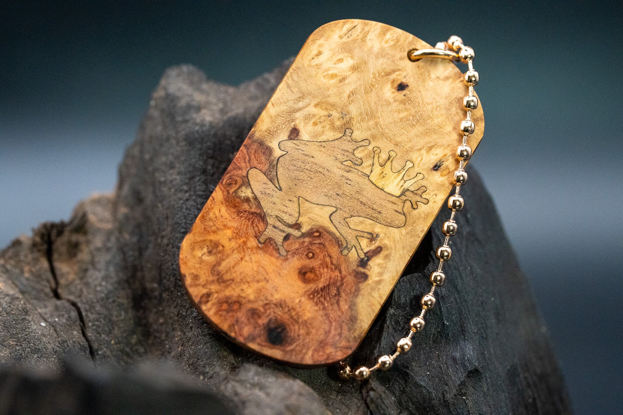 【朱色の銘木】本花梨瘤 紅白 ドッグタグ 象嵌 カエルの王様