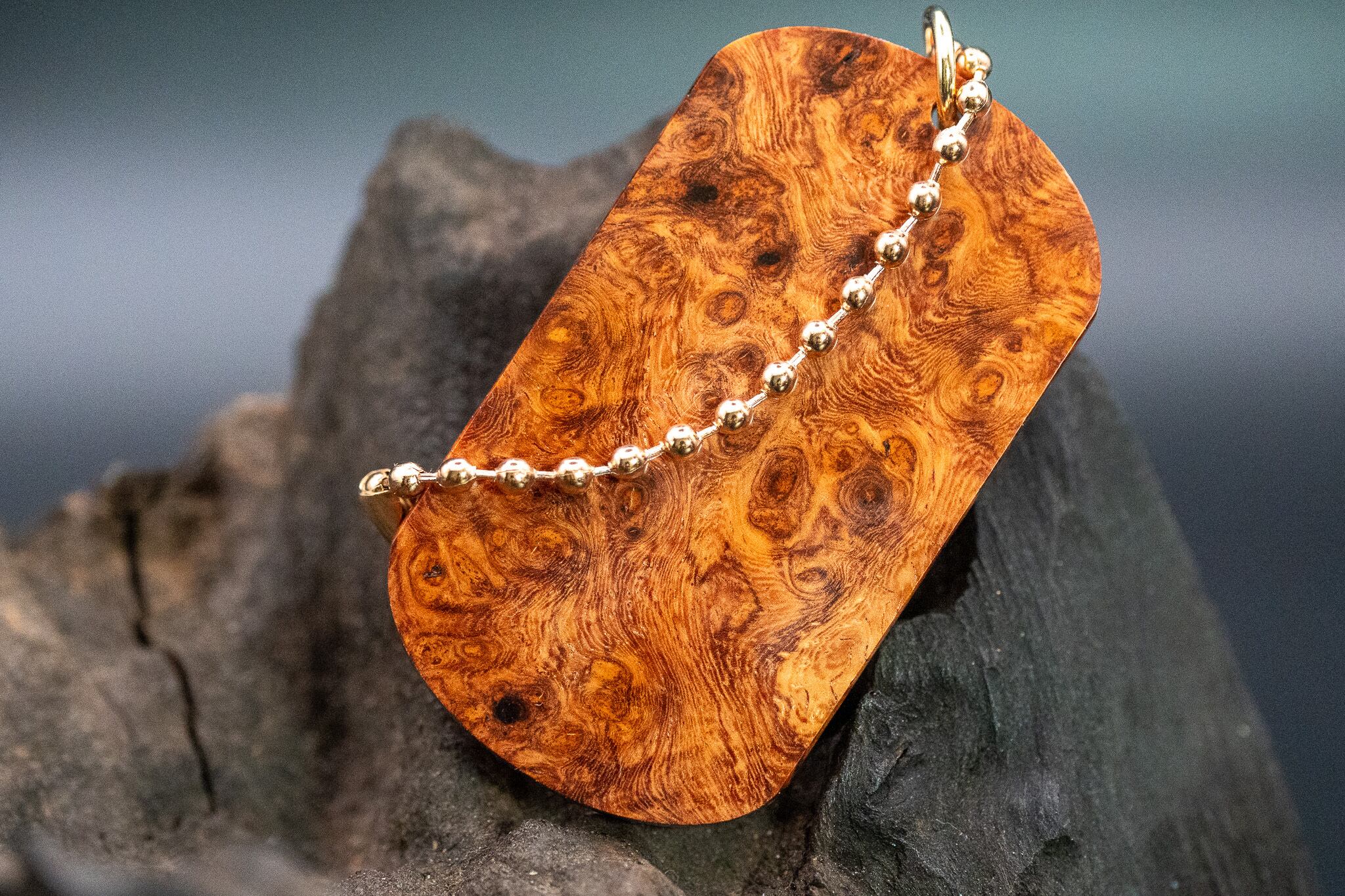 【朱色の銘木】本花梨瘤 ドッグタグ 象嵌 星明り