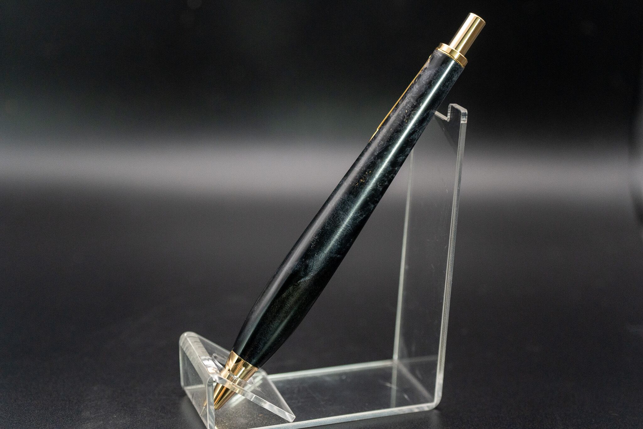こちらは、ハードメープル瘤に墨黒の樹脂で染色した一本。