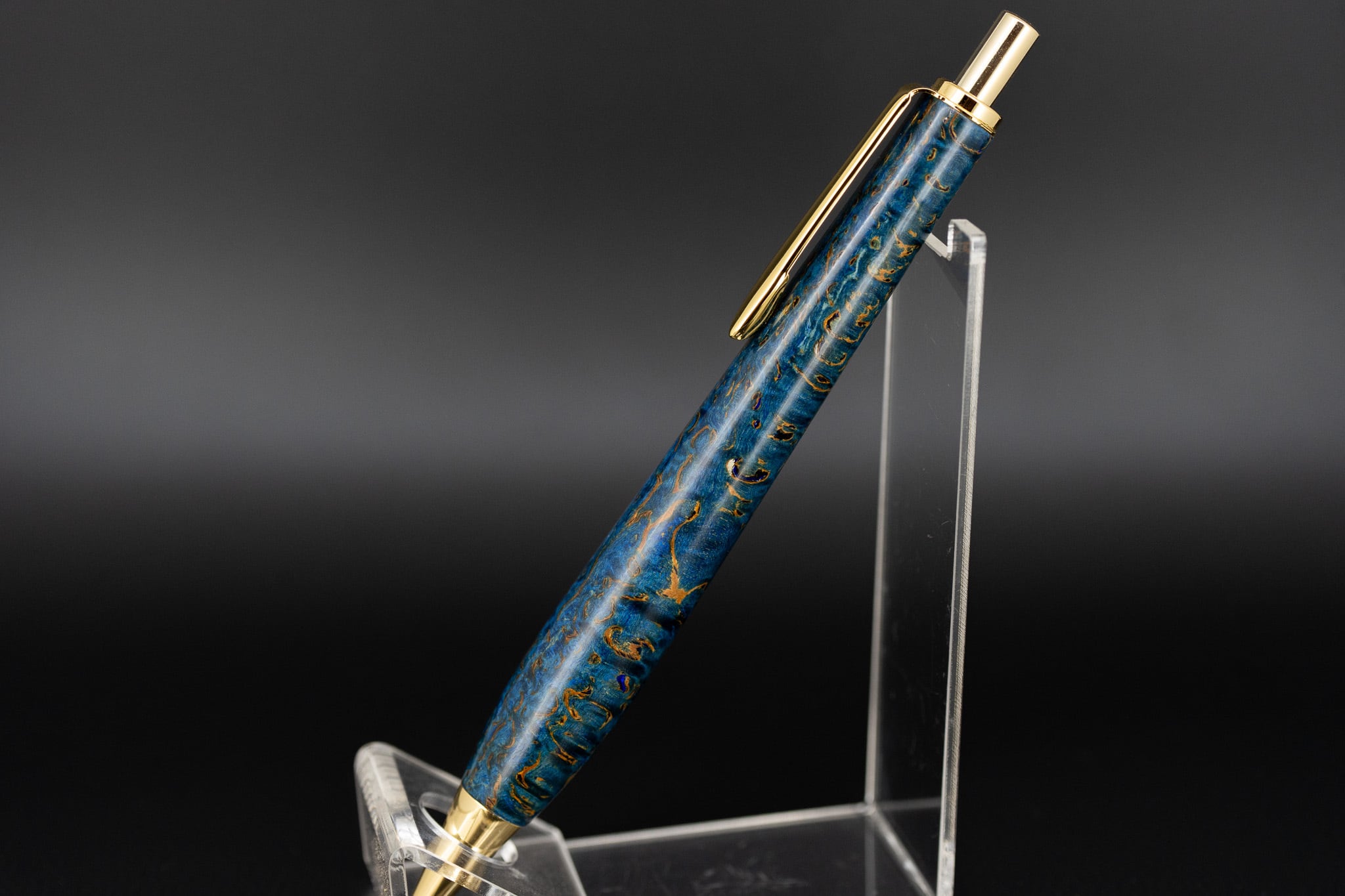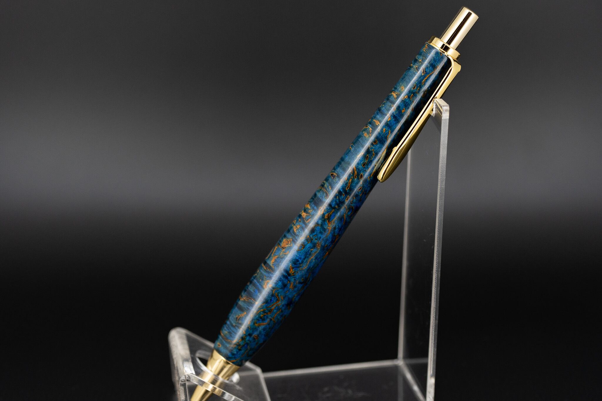 こちらは、マスールバーチに青色の樹脂で染色した一本。