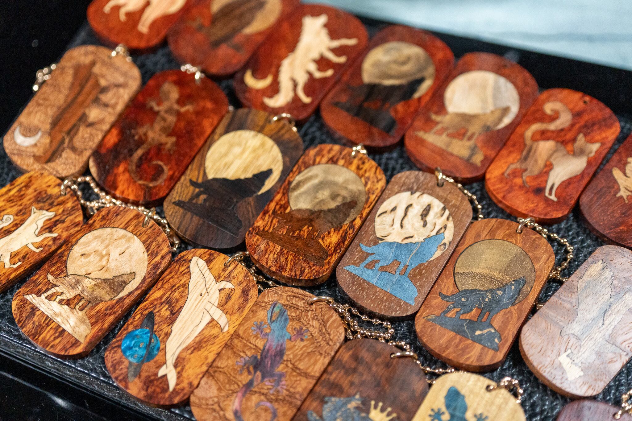 ※【朱色の銘木】 本花梨瘤 特上 ドッグタグ 象嵌 木登りトカゲ