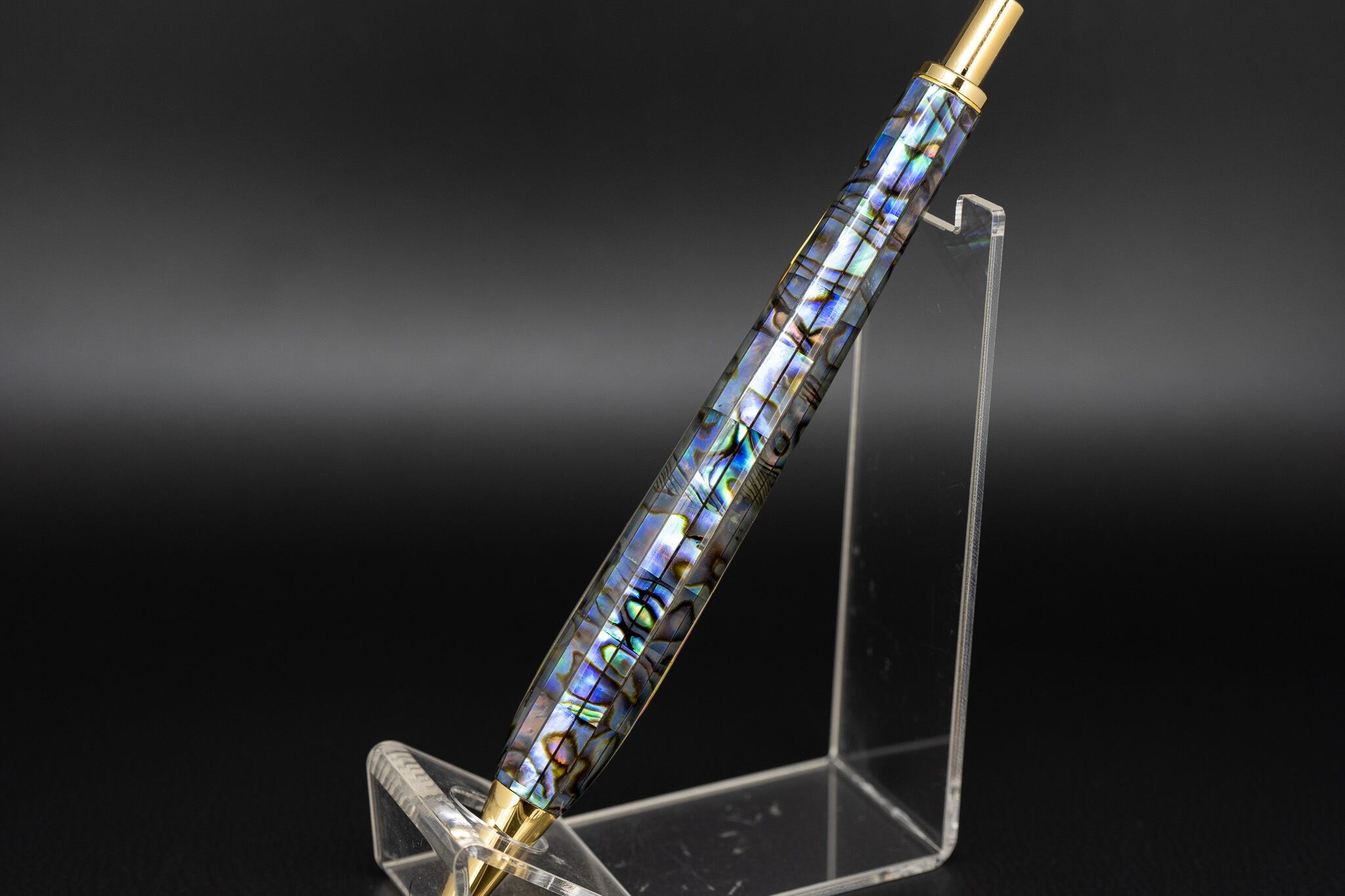 こちらはニュージーランド原産のアバロンを2㎜幅にカットし、樹脂で閉じ込めました。