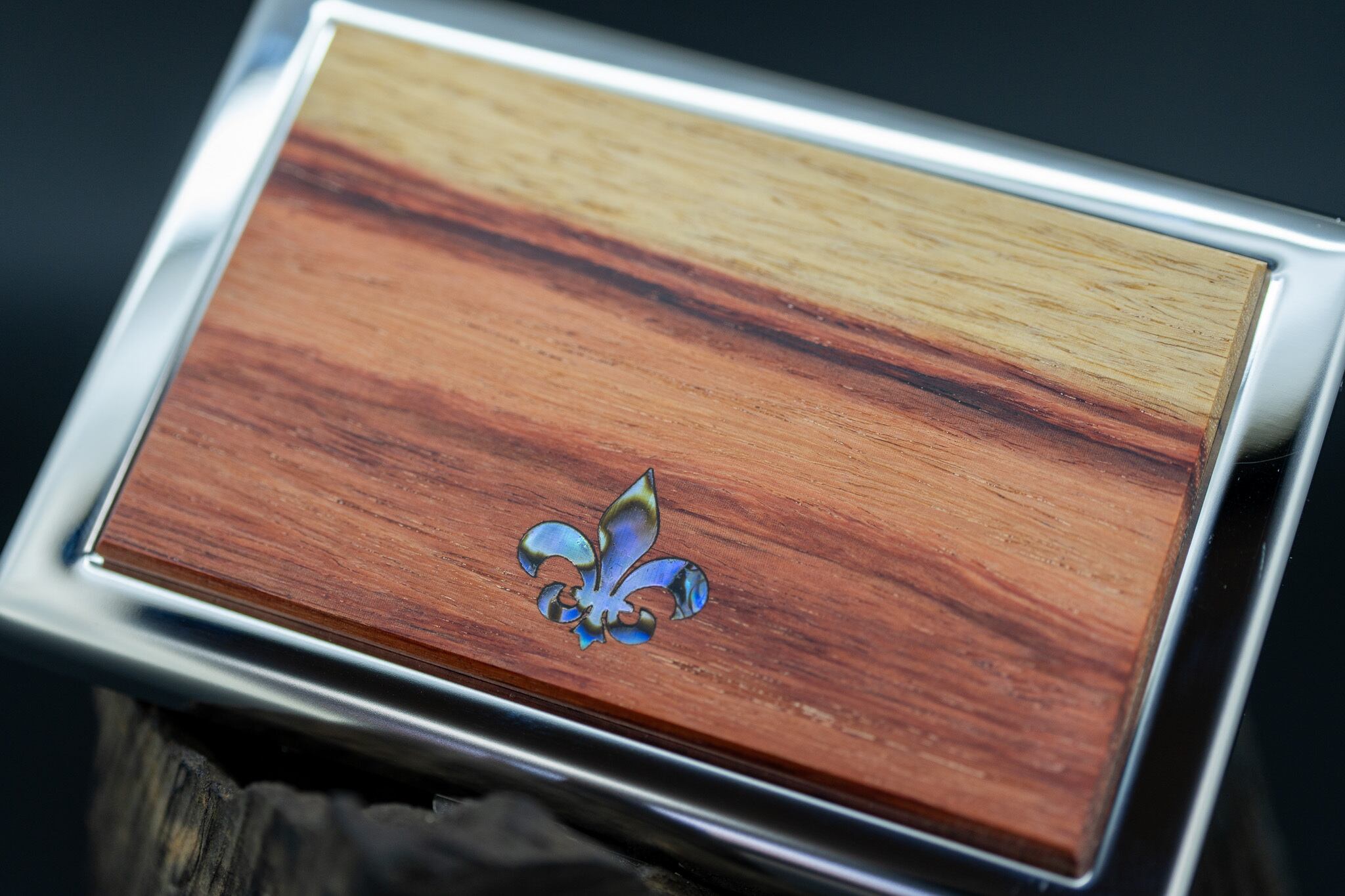 【 木材の女王】 チューリップウッド ツートン カードケース silver フルールドリス 象嵌