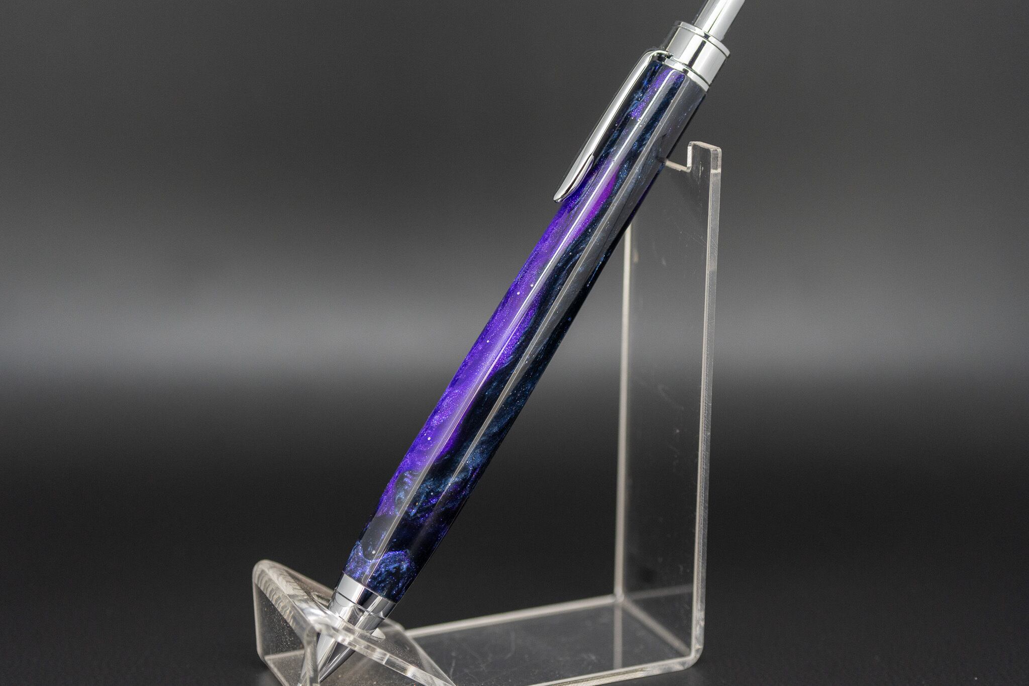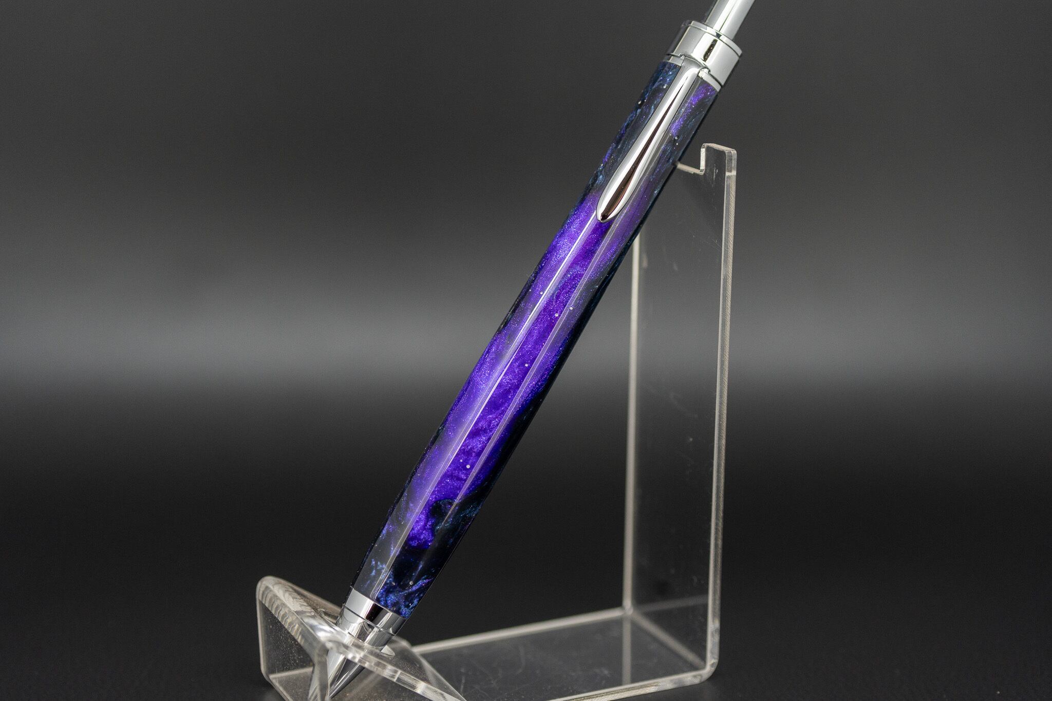 紫と藍がきらめき混ざり合う、まるで銀河を閉じ込めたような作品。