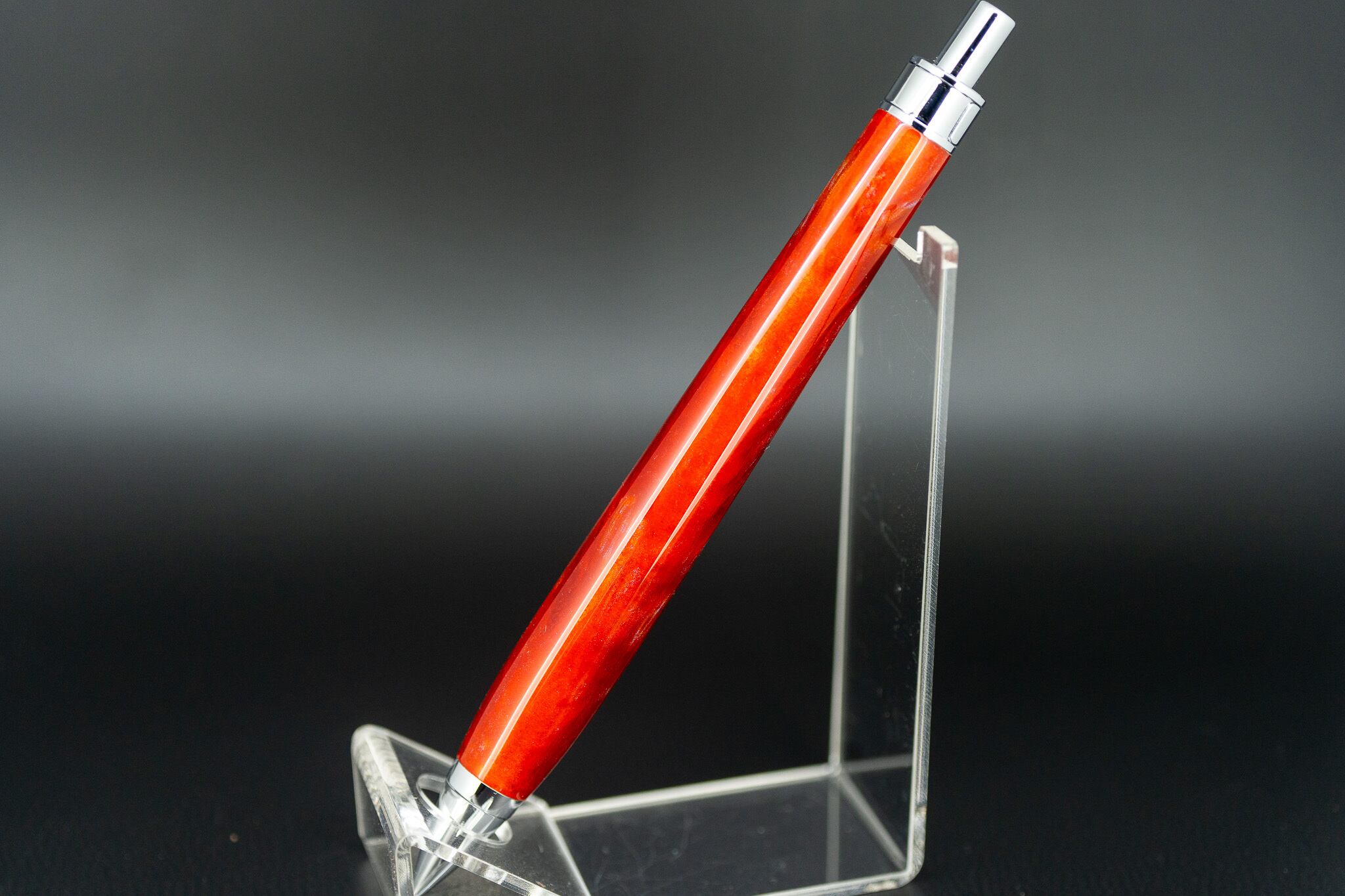 鮮やかな赤に薄いブルーのラメが混ざる、華やかな一本。