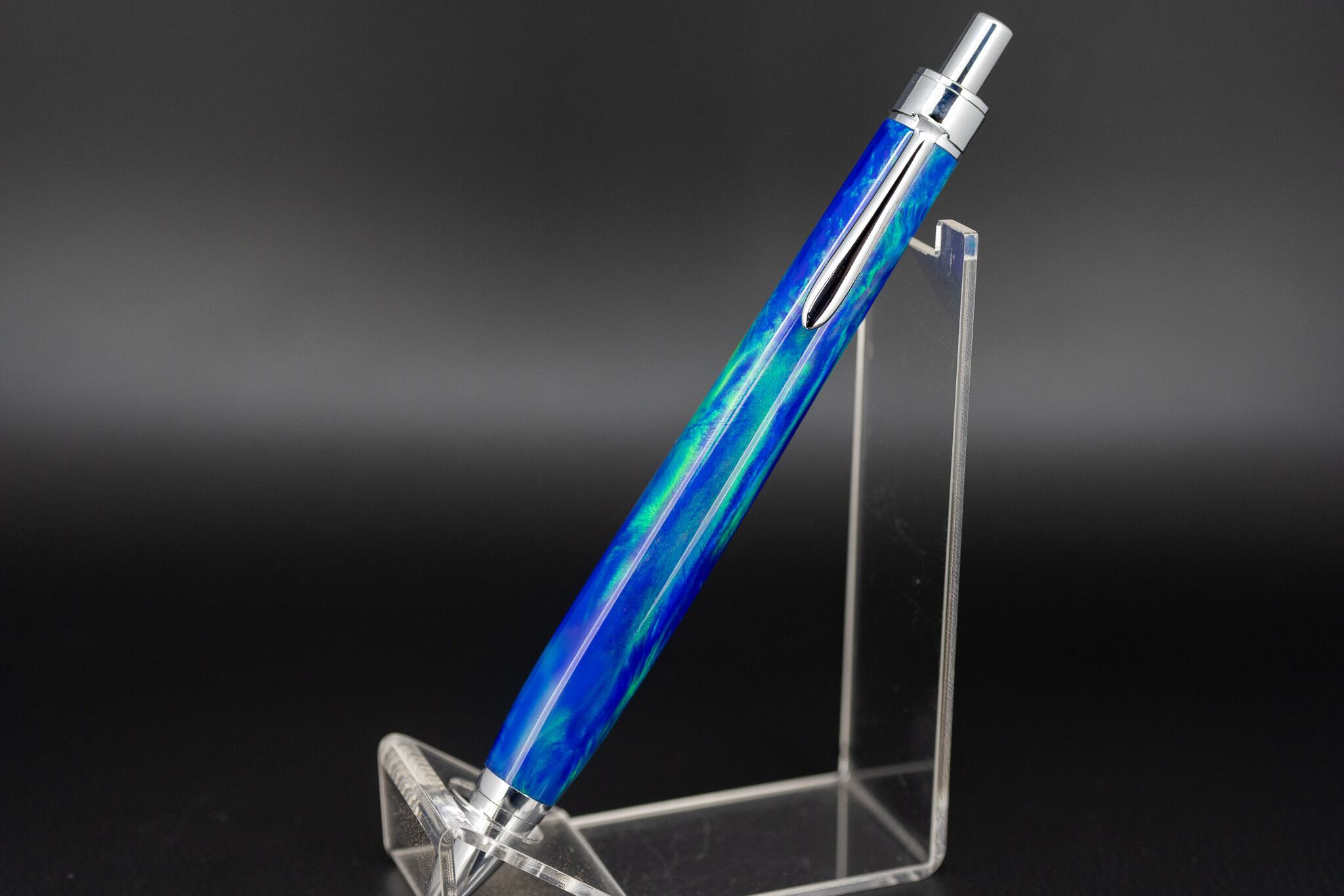 日本が誇る新技術により、樹脂とシリカ粒子(天然オパールの構成成分)から製造されています。ハイブリッドオパールの結晶からペン一本分を贅沢に切り出し、磨き上げました。
