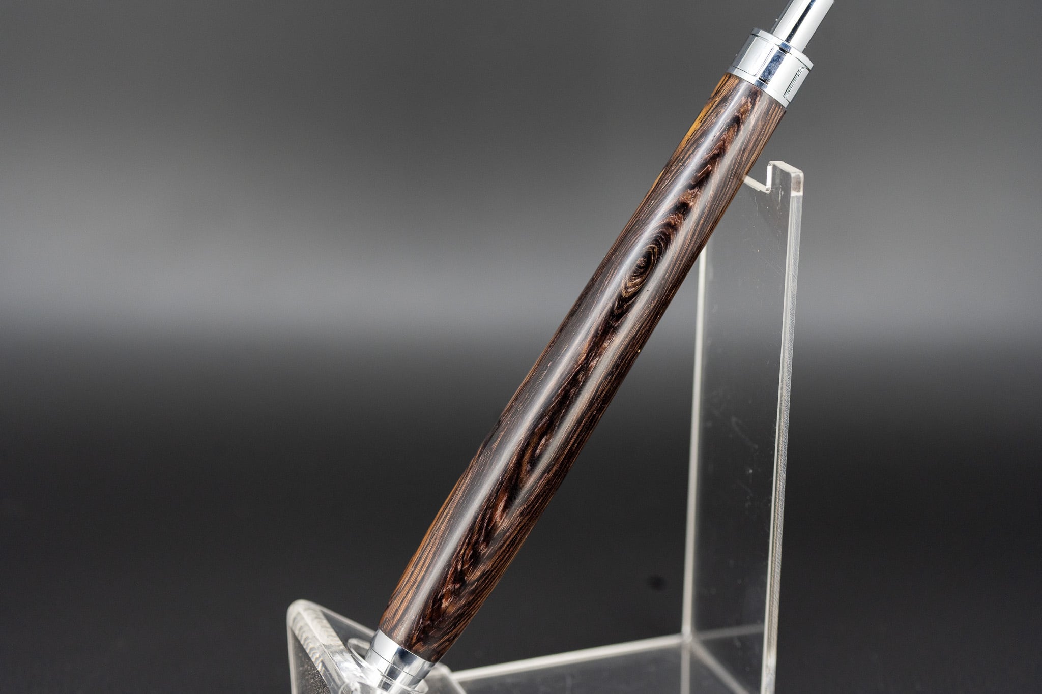 茶褐色から黒の、色彩豊かな木目が美しい銘木。