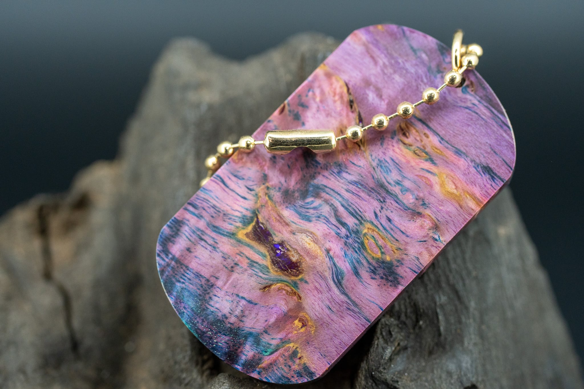 【 北欧の銘木 】マスールバーチ スタビライズウッド ドッグタグ 象嵌 木登りトカゲ