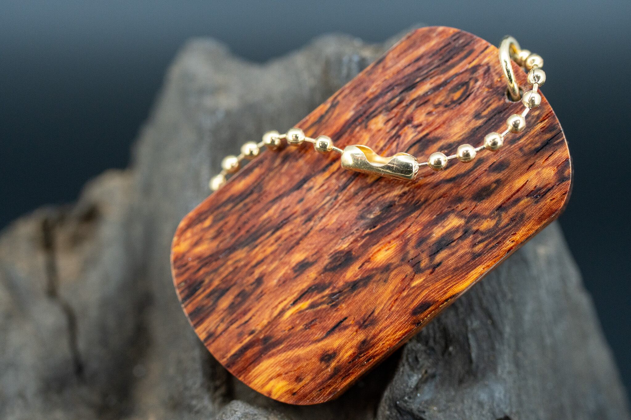【東洋のローズウッド】 縞紫檀 変わり杢 ドッグタグ 象嵌 闊歩