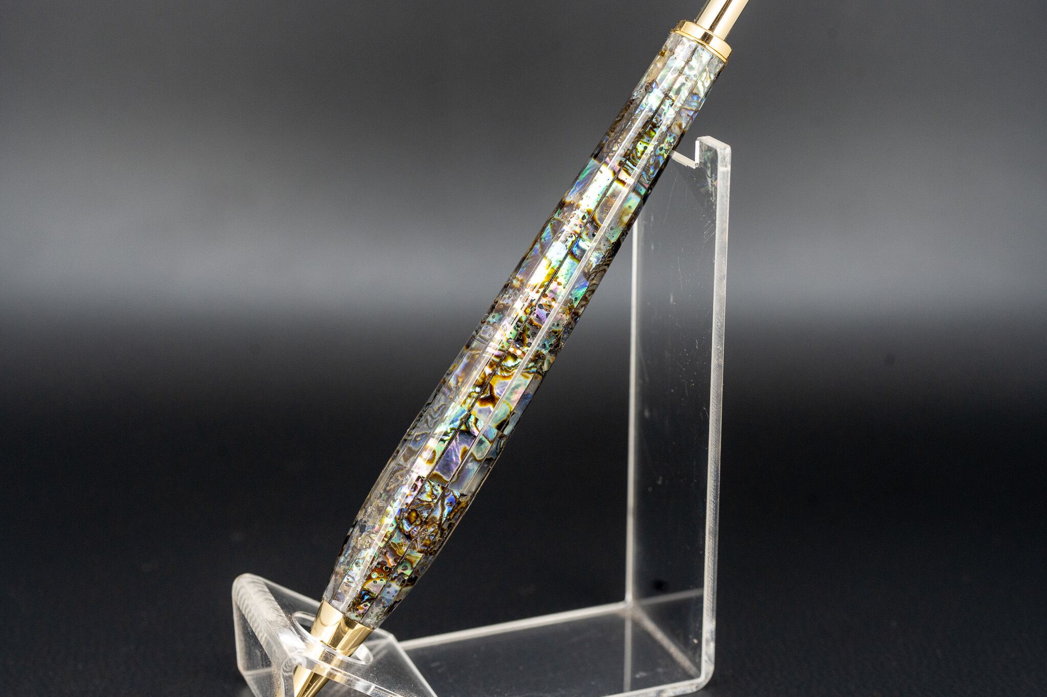 こちらはメキシコ原産のアバロンを2㎜幅にカットし、樹脂で閉じ込めました。